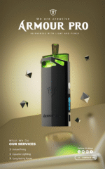 SAMURAI Armour Pro 將軍 PRO 發光主機是一款集外觀設計、強力性能與實用功能於一身的高階可注油電子煙設備。支援多段瓦數調節與 LED 燈效顯示,滿足進階玩家的吸煙體驗需求。搭配新款 0.6Ω/0.8Ω 網狀加熱彈,口感更細膩,煙霧更飽滿。